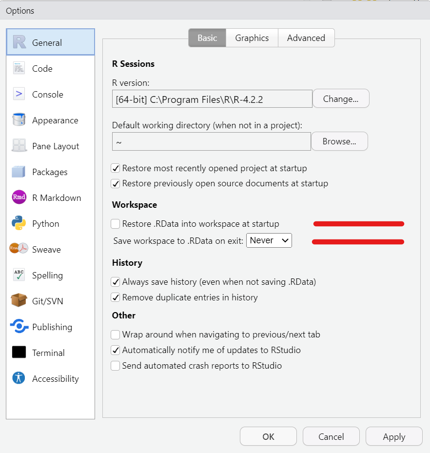 When using R, the statistical analysis and computing platform, I find it really annoying that it always prompts to save the workspace when I exit. This is how I turn it off.