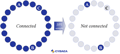But if I take out 9/10 of the sample, then A and B appear very far removed. And if C is the trigger for the whole circle to leave, then I have lost my ability to predict.