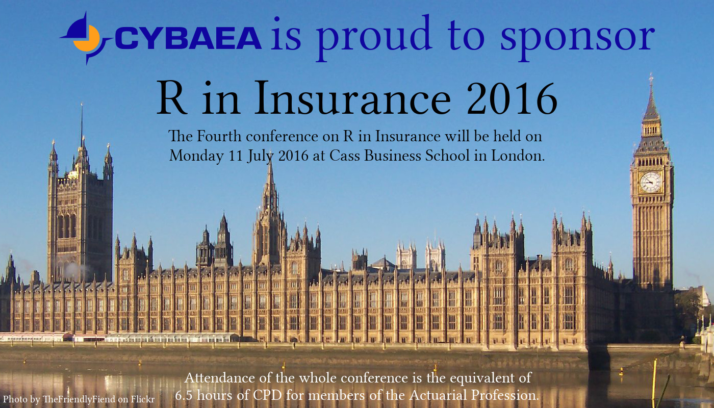 The 2016 conference on R in Insurance will be held on Monday 11 July 2016. This year we are back at Cass Business School in London, UK. This is the fourth time the conference is held and CYBAEA is proud to have sponsored all four conferences.