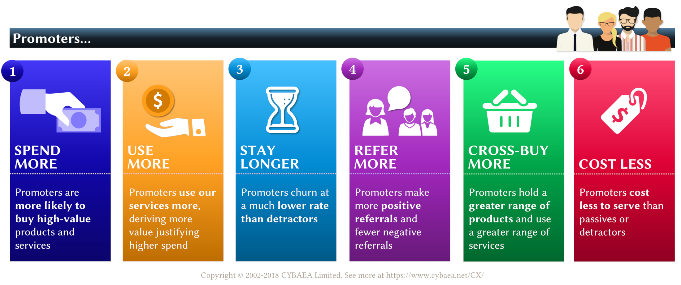 Refer more: make more positive referrals and fewer negative referrals. A prospect with a personal recommendation is much more likely to convert than one attracted only by traditional marketing. Promoters can be converted to advocates who not only would recommend you if asked but who actively and unsolicited promote your brand.