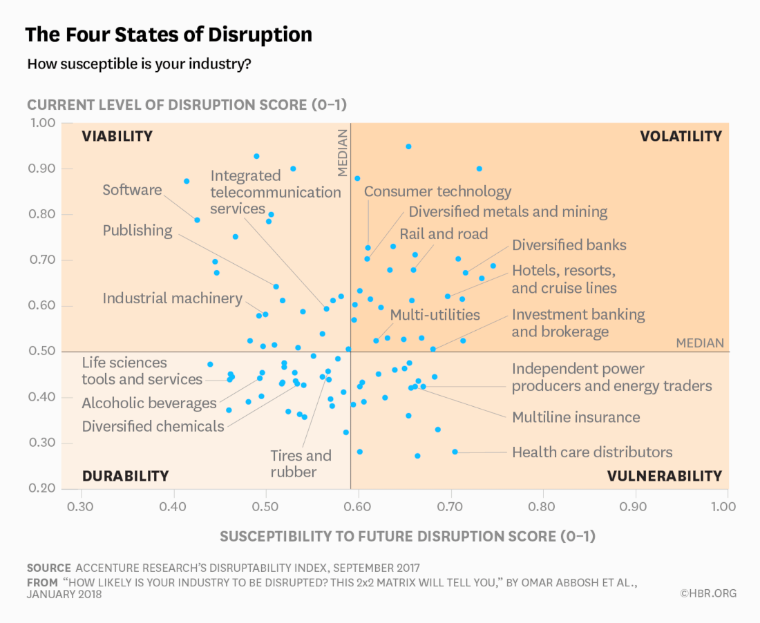 This is the era of market disruption. Accenture publish an index which shows that two-thirds of companies currently face high levels of disruption, and two-fifths show severe signs of susceptibility to future disruption.